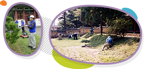 ¶ÇÇÑ ¹®ÈÀç º¹¿ø ¹× Á¶°æ°ø»ç¸¦ ¼º°øÀûÀ¸·Î ÁøÇàÇØ¿Â Á¶°æ Àü¹®°¡µéÀÌ ³ëÇϿ츦 ¹ßÈÖÇØ ¹®ÈÀç º¸È£¸¦ À§ÇÑ ºÀ»çȰµ¿À» ÁøÇàÇÏ¸ç ¹®ÈÀç¿¡ ´ëÇÑ °ü½ÉÀ» ºÒ·¯ÀÏÀ¸Ä×´Ù. ÀÌÃæ¹«°ø ¹¦¿ª, Áö¿ª»çȸ ¿¾Áý º¹¿ø Ȱµ¿À» ÁøÇàÇßÀ¸¸ç, 2006³â 7¿ù¿¡´Â °æº¹±Ã Å¿øÀüÀ» ã¾Æ Àܵð±ð±â, Á¦ÃÊÀÛ¾÷, ¼ö¸ñ °¡ÁöÄ¡±â¸¦ ½Ç½ÃÇß´Ù. ÀÌ ¹Û¿¡µµ ¾çÀçõ, °æ¾Èõ, ÇѰ¿¡ ´ëÇÑ ÇÏõÁ¤È¿Í ½Ä»ý¹æÀ½º® ¼³Ä¡¸¦ ÅëÇØ ½Ã¹ÎµéÀÌ µµ½É ¼Ó¿¡¼ ÀÚ¿¬°ú ÇÔ²² ÈÞ½ÄÀ» ÃëÇÒ ¼ö ÀÖ´Â °ø°£À» ¸¸µé°í ÀÖ´Ù.